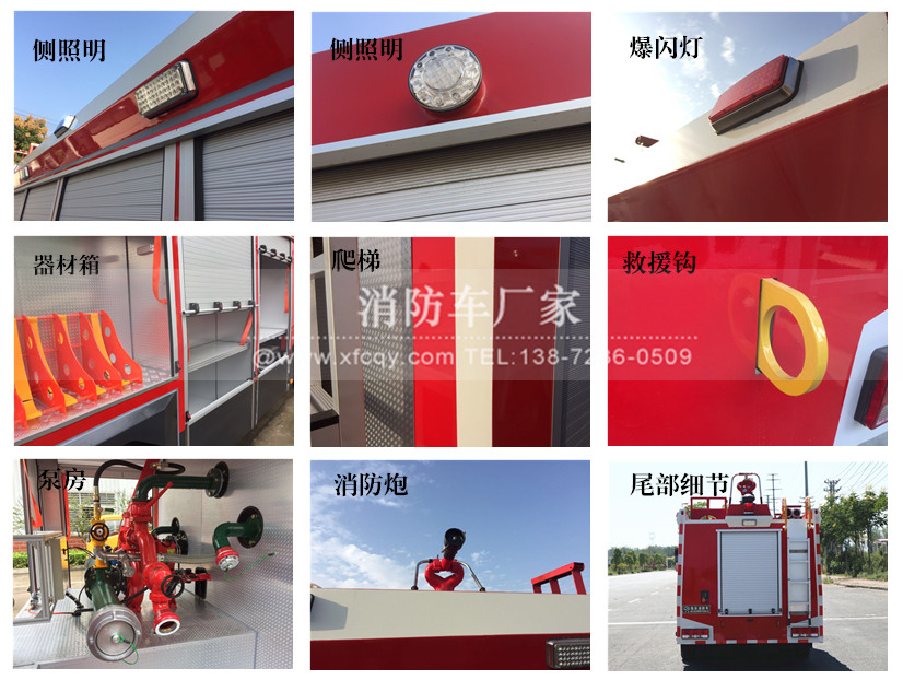 駕駛室頂部前端為長(zhǎng)排警燈,車身后配有24V/60W火場(chǎng)照明燈一只,車輛兩側(cè)上方各配有紅藍(lán)相配的爆閃燈,下方安裝安全標(biāo)志燈,乘員室、器材箱、 泵房?jī)?nèi)均裝有照明燈,加裝有100W警報(bào)器,回轉(zhuǎn)警燈開(kāi)關(guān)、通訊設(shè)備預(yù)備接口。