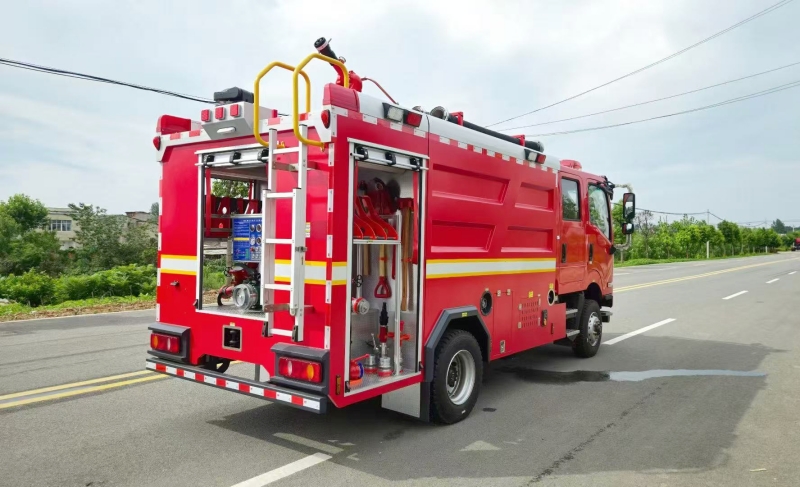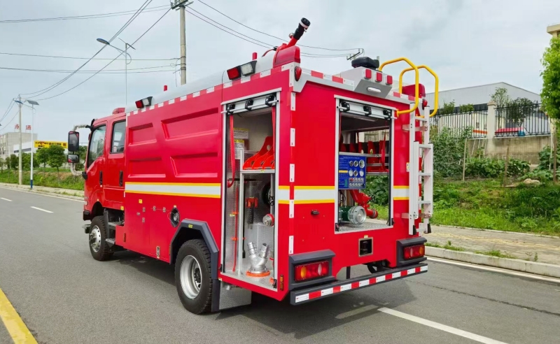 水罐容積:6m3(實際載水量6000kg),罐體采用優(yōu)質(zhì)碳鋼(底板4mm/側(cè)板3mm),內(nèi)部防腐處理。注:部分車型采用水+泡沫雙罐設(shè)計(如:水4.2m3+泡沫液1.765m3)。